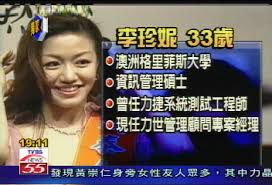 李珍妮在新聞爆發前,上東風《男女放輕鬆》,她說一個月花200萬買精品,主持人白冰冰質疑「一雙鞋要9萬,是上班族兩個月的薪水,不覺得太貴嗎」?她稱未來會走入家庭,會學持家之道。(中國時報2012-07-02)