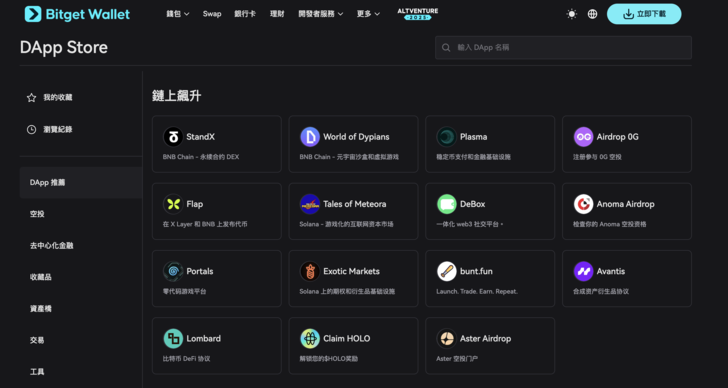 Bitget錢包不僅是資產管理工具,還內建DApp Store,讓用戶能直接接觸各類去中心化應用。無論是DeFi、鏈上遊戲、社交平台,或跨鏈服務,都能透過DApp Store一鍵進入。用戶不必再額外搜尋或手動輸入網址,降低誤觸釣魚網站的風險,同時也提升使用效率。對初學者而言,這是一個安全且便利的入口,逐步體驗Web3的多元生態。
