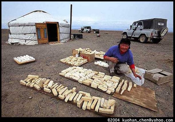 ◆駱駝奶做成的奶酪,曬乾後留著一整年慢慢吃。