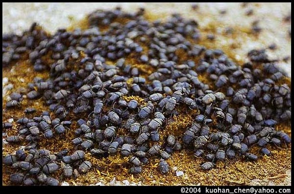 蒙古的牛、羊、馬等動物,每種的便便都有專屬的推糞金龜蟲。這群金龜很幸福,沒有人類來跟他們搶。但是當我一靠近,他們像軍隊移師轟地散開,好壯觀。