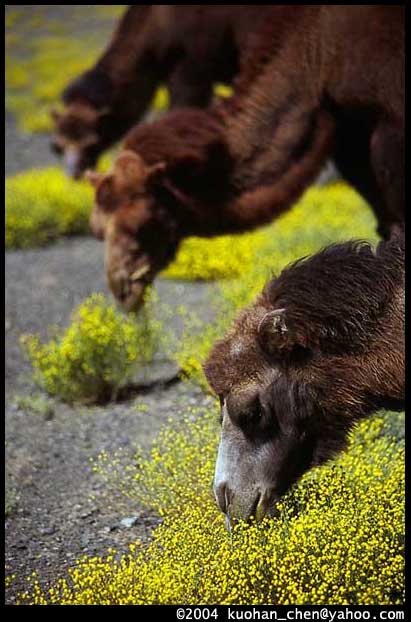 蒙古朋友說,駱駝才不愛吃黃花。他比劃著桌上的糖果說:這裡有一堆糖,你會先撿好吃的糖果,現在沒得選了,就只好吃這些不好吃的糖。那些花就是秋天剩下的食物。菊科的小黃花,看起來一點也不好吃,類似艾草有濃重的味道。