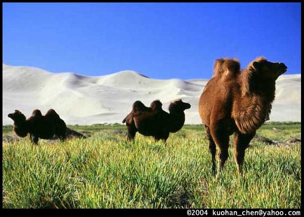 在戈壁有水源的地方也可以養牛羊吃,蒙古人並不常吃駱駝,也不愛吃。沒東西吃時,我吃過半顆駱駝肉包子。嚐起來硬硬臊臊的,難下嚥。聽說,冬天駱駝肉比較好吃。