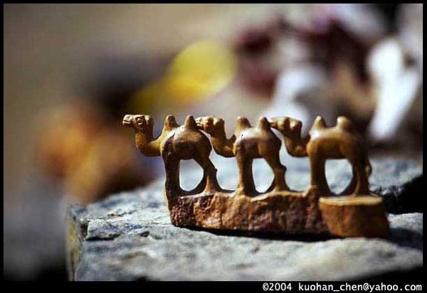 ◆尤金河谷邊的雕刻師,用戈壁的黃石頭刻成的駱駝隊。