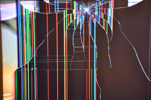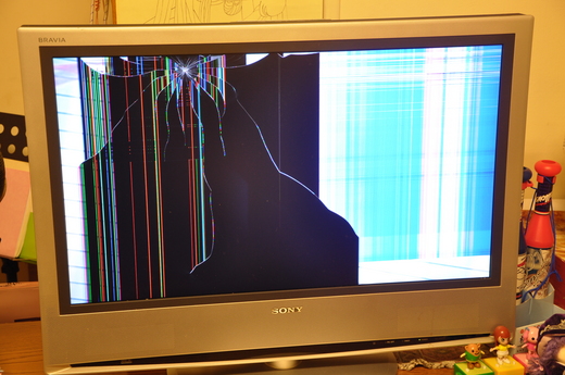 的確 那是 液晶電視 螢幕裡面的 玻璃 被 棒球 丟中的 破裂畫面
