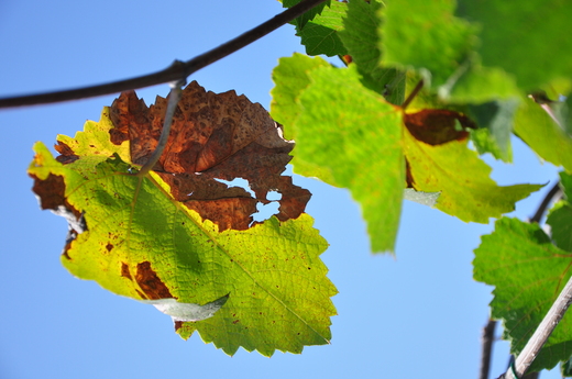 棚架上的 葡萄葉 也開始 轉黃 掉落.............