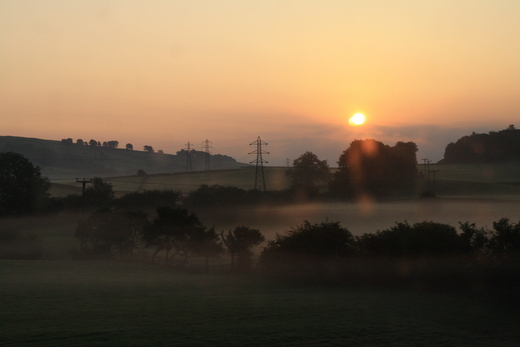 (九月一日一早在倫敦Euston車站趕清晨5: 39分的火車前往湖區Windemere,沒想到在車內透過玻璃,還能捕捉到晨曦的美景,這是旅行中即興捕捉到的瞬間晨光,閃爍著ㄧ種非預期的快樂。詩作於2010年9月11日;照片攝於2010年9月1日。)