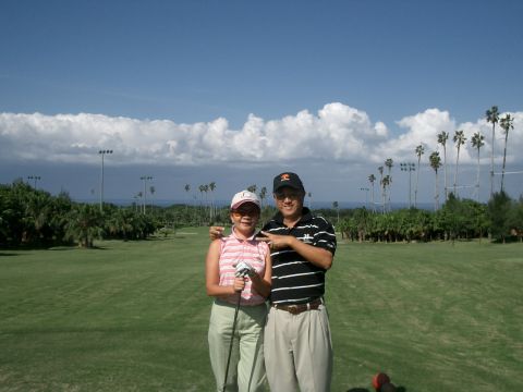 B1先打,偶就像不會打球般,力氣也用不上,可翁媽就不一樣了,球打得ㄅㄧㄤˋ ㄅㄧㄤˋ 叫,第2洞可惜了一個8呎鳥沒進,沿路只見她長短桿有模有樣,而我只有拖著沈重的腳步在球場上混。來到第7洞爬速利,前方旗位,我打短了在果嶺前,翁媽的球滾過頭,在後面長草,離洞7、8碼,下坡右轉的旗位。我先切沒切好,被她恥笑一番說等她切完球再來教我,說完只見她桿起桿落,好球,哇!切進了!和我擊完掌,跑到我剛才的球位,一切!哇你咧!又被她切進了!