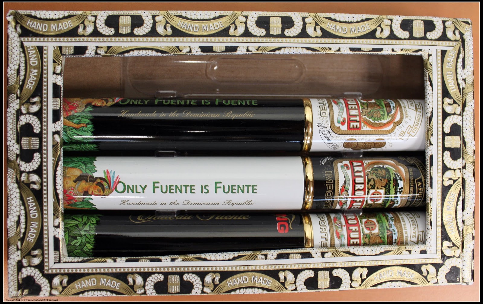 在多明尼加聲譽卓著的Arturo Fuente雪茄家族裡,Chateau Fuente King T 乃具有代表性的雪茄之一,是7×49(長7 inches,相當17.8公分,環徑49)的Churchill尺寸雪茄。茄套和茄心採用多明尼加種植的菸葉,茄衣採用美國康乃迪克州河谷樹蔭下的菸葉(Connecticut shade,許多上等雪茄都採用這種菸葉作為茄衣)。他也是這家族首款鋁管雪茄,華麗奪目的Chateau Fuente King T鋁管讓人驚艷,從裝有杉木墊片的管中取出雪茄,看到雪茄的腳部還圍繞著紅色的緞帶,用玻璃膠紙黏著,具有保護作用,雖然是噱頭,卻也相當費工。