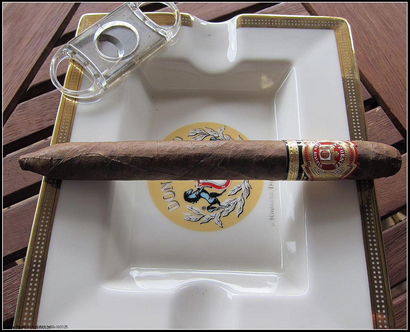 點燃之後的第一口就感受到這是較濃烈(Medium)的雪茄,其實從外觀看,深色茄衣的雪茄通常就屬於重口味。初段抽起來有杉木香夾著黑巧克力的苦甜味,是一隻味道飽滿的雪茄,抽起來很順暢;中段之後會帶出胡椒味混合著木香,仔細品味有點泥炭味(就像Johnnie walker威士忌以泥炭香味著稱),但是品質很穩定,濃淡始終如一,味蕾的變化是漸層的,也沒有濃烈的尾勁;我足足享用了一個半小時,這是一隻適合晚餐後的壓軸雪茄或下午茶時間享用的美味雪茄。