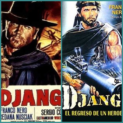 Quentin Tarantino所崇拜的影片《Django》是義大利在1964-1966年推出橫掃美國票房,瘋迷全球的經典西部片《荒野大鏢客》三部曲之後,另一部義式風格的西部槍戰片。《荒野大鏢客》捧紅了克林伊斯威特和以口哨為主的主題音樂,但他在電影中的名稱Joe,連我這老影迷都記不得;可是《Django》(台灣翻譯成《荒野大鏢客續集》)在片中的主角強哥(Django)拖著棺材走江湖,配合歌詞都是Django的主題曲卻讓人難忘,飾演強哥的法蘭哥尼羅(Franco Nero)反而淡入歷史。