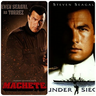 擁有合氣道黑帶七段的武打明星史蒂芬席格 (Steven Seagal),從1990 "殺不死的勇者" (Hard to Kill)到1992與1995主演的 "魔鬼戰將1、2" (Under Siege)叫好又叫座,當時與席維史特龍、阿諾史瓦辛格、布魯斯威利等紅星同列一線動作巨星。可惜好景不常,在1996年的 "747絕地悍將" (Executive Decision)裡,飾演特種部隊指揮官,在空中偷登被挾持的飛機時就被強風吹走,開演半小時就畢業,成為短命的配角;在2010的B級片 "彎刀"(Machete)裡,不但是配角,還演反派,結局當然不得好死。史蒂芬席格是個怪咖,篤信藏傳佛教,從帥氣到快速發福,每年還是拖著肥胖之身推出動作片,不但劇情差,武打招式也千篇一律;台灣影迷只有在電視、網路或DVD出租店才看得到這位曾經紅過的偶像明星。