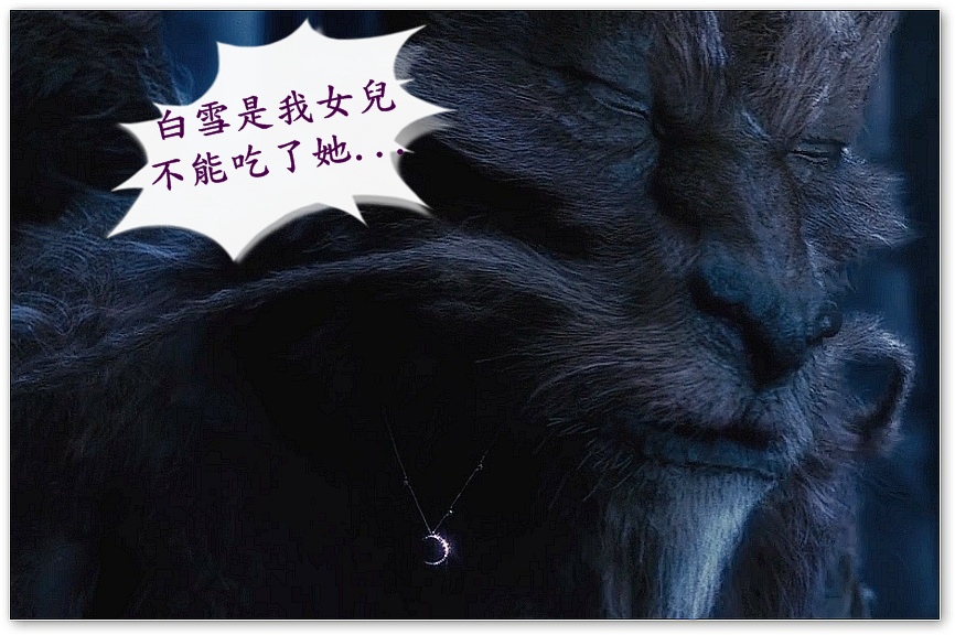 在 "魔鏡魔鏡"電影裡,失蹤的國王被邪惡的王后變成一隻惡龍,因此最後要吞噬白雪公主時,父性與親情取代了獸性,因此動作突然變得遲緩、龍眼緩緩閉上;白雪見機不可失,說是遲那時快,一刀刺進龍心,只見轟然巨響與衝入雲霄的閃光,惡龍又變回了國王。
