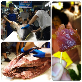 上周末下午去天母家樂福購物,生鮮市場正在宰殺一條大鮪魚,不到半小時,百餘斤的黑鮪魚就完全支解....