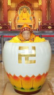 悟明長老在台首倡禮拜大悲懺,常用大悲水和信眾結緣,弘揚觀音法門,被尊稱為「觀音老人」,是國內佛教界的珍寶。