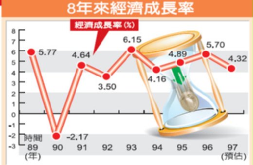 台灣2001至2007年平均經濟成長率較1993至1999年衰退2.5個百分點,經濟衰退率居亞洲各國第二,而且2001至2007年平均經濟成長率