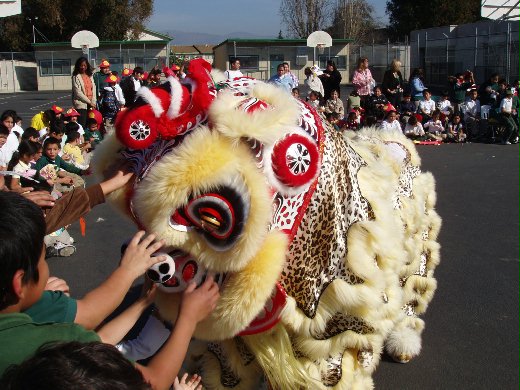 3. 今年又請了去年的高中越南學生來舞龍舞獅,當天早上又派用我班上的蝦兵海將拿著大信封去每班老師那化緣,結果替這八個表演者籌到一百五十塊。