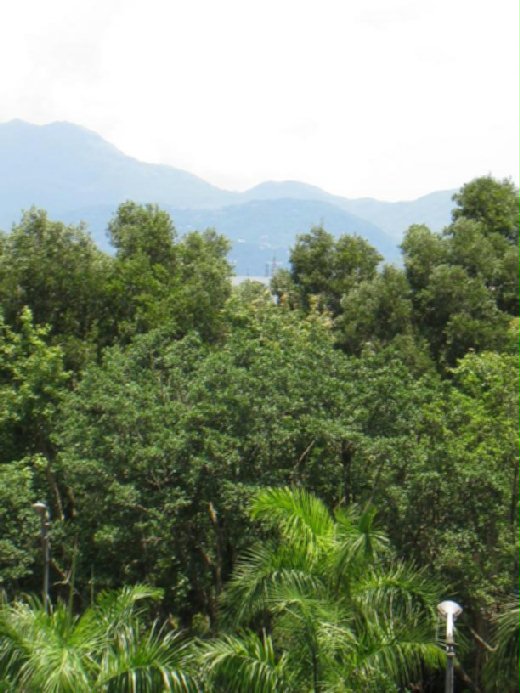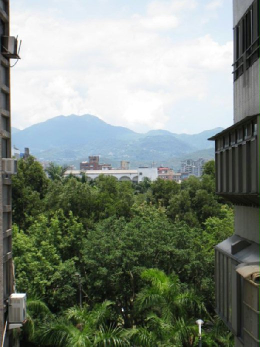 公寓客廳的落地窗正對著兩棟大廈間的防火小巷,站在客廳或主臥室窗前,視線穿過小巷,跳入眼簾的依序是仁愛路的林蔭道、國父紀念館內的綠樹蔭、遠山、藍天、白雲. 小巷兩邊的高樓大廈阻擋掉不少仁愛路上的行車噪音,也算是鬧中取靜. 附近又有光復市場、光復國小、仁愛國小、仁愛國中、國泰醫院,是個不錯的居家處所,雖然沒有電梯,把上下樓梯當做是日常運動亦有益無害,所以我們沒考慮太久,就歡喜的將它買下.