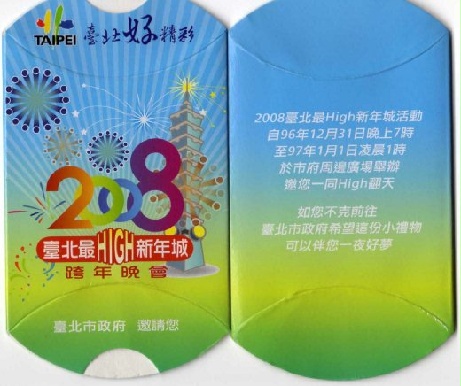 ( 茲貼上 2006 ~ 2008年跨年活動,北市府貼心贈送的 3M耳塞外包裝盒正反面上的圖樣與文字 )
