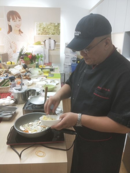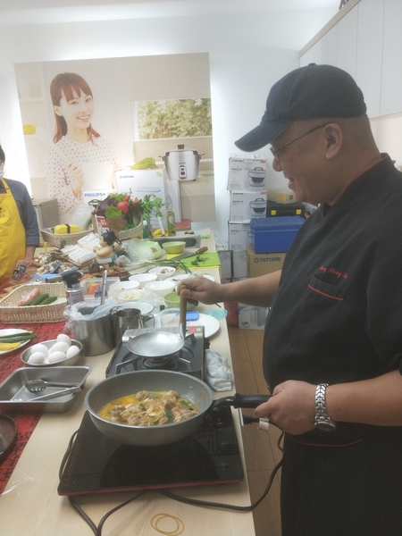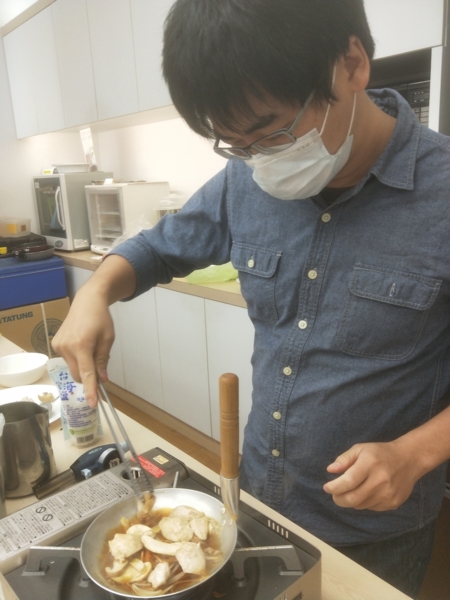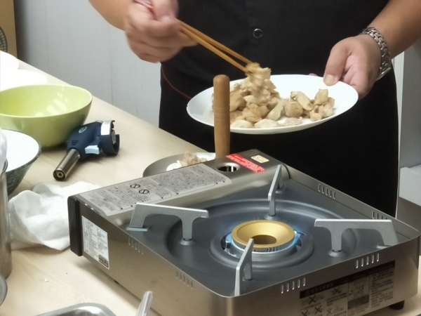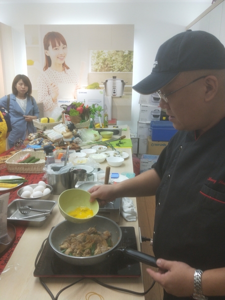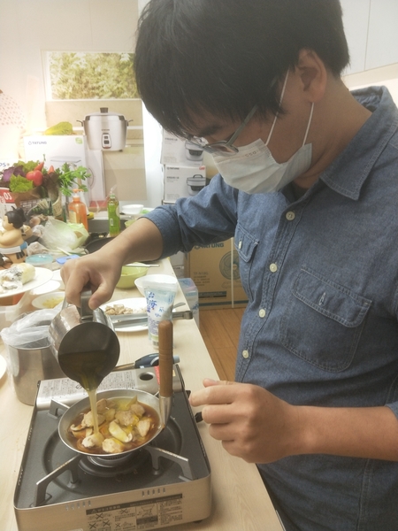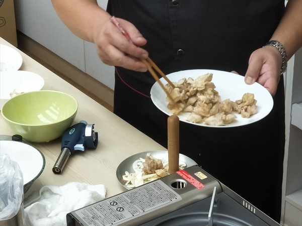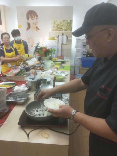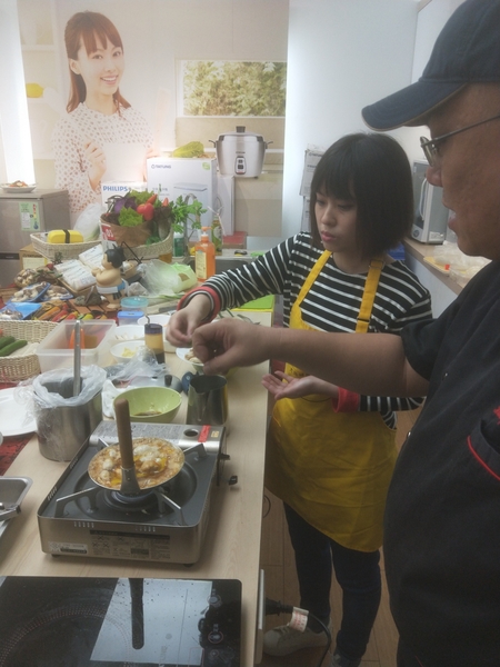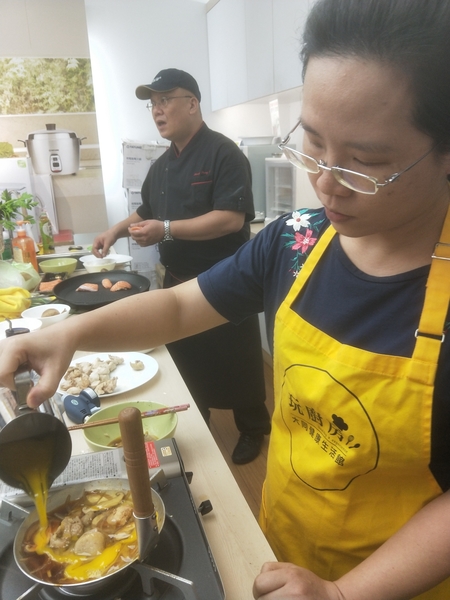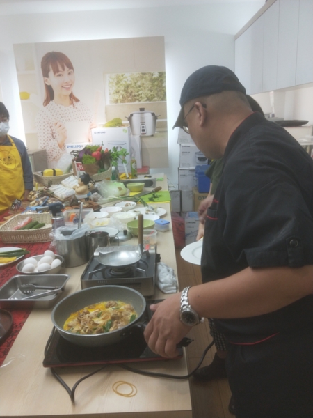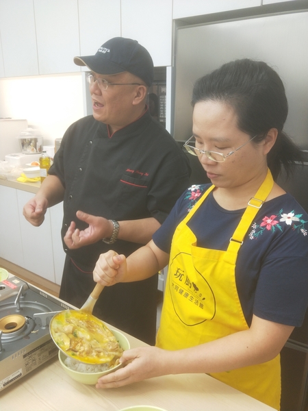 大同健康生活館x玩廚房 的凱爸老師很細心,會一個個教導我們這種還沒有做菜,就面有菜色的菜鳥,如何順利做出道地的香氣四溢~親子丼OYAKODON。現場示範了用平底鍋及廚師用的小手鍋兩種方式。大家全都聚精會神的專注於學習~