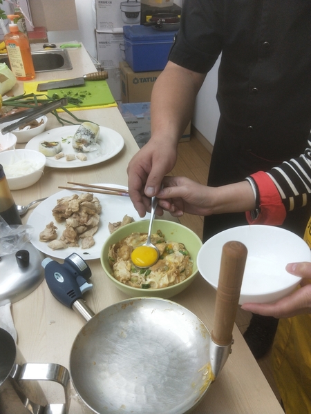 課堂中~老師手把手帶我們實作了兩道料理 :