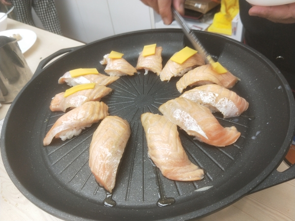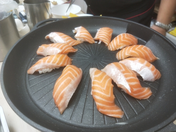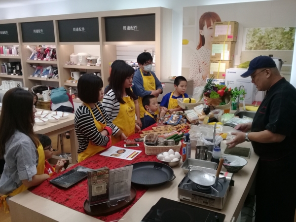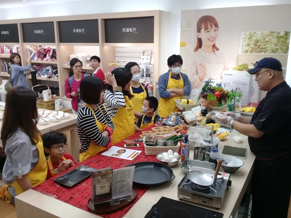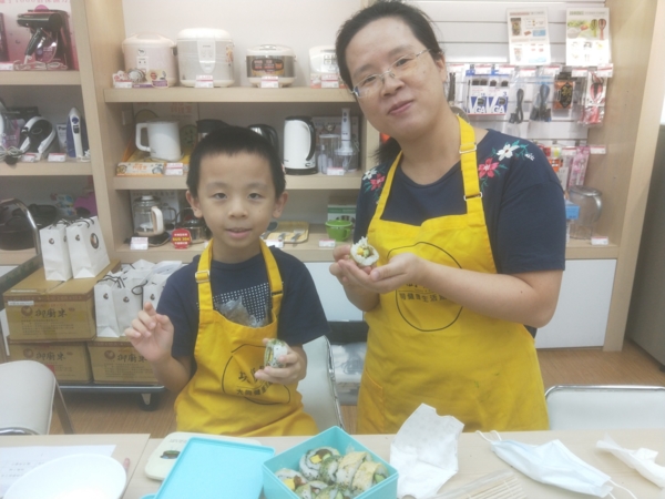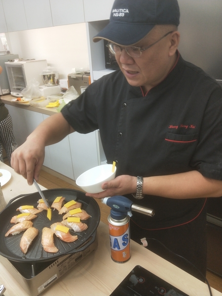 聽著老師幽默風趣的課程教學,現場許多媽媽及帶來的小孩聽的都笑咪咪的。除了親子丼及壽司卷之外,醬汁調配,學員全都能夠親自體驗得到,老師現場還額外請大家吃了炙燒鮭魚握壽司,真的有賺到感覺。(現場女學員看了鮭魚~各個都自然散發眼神光)