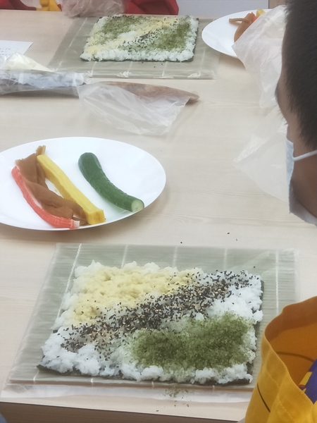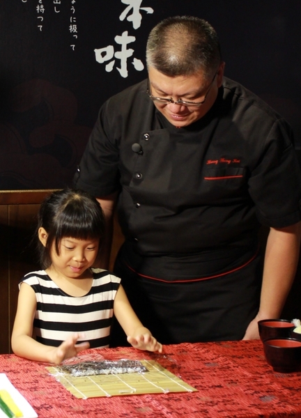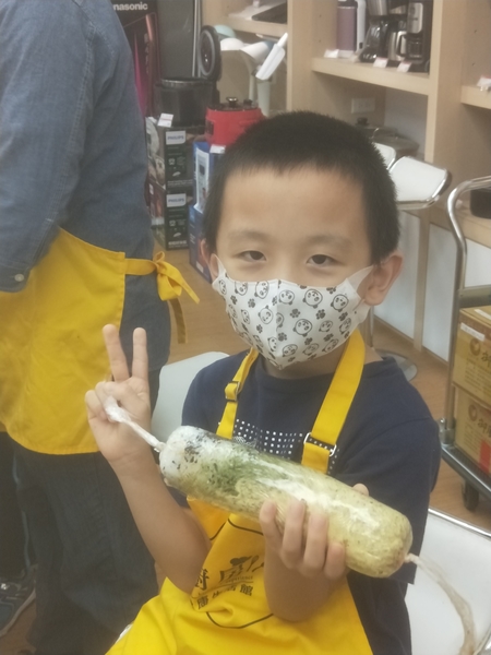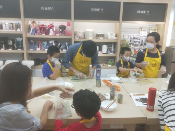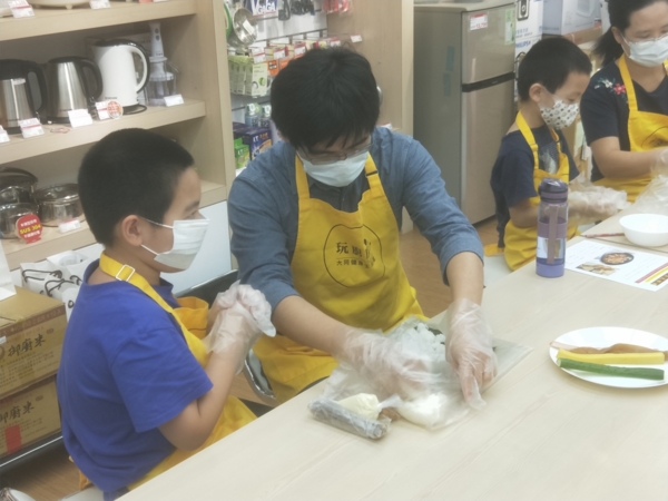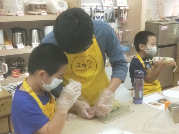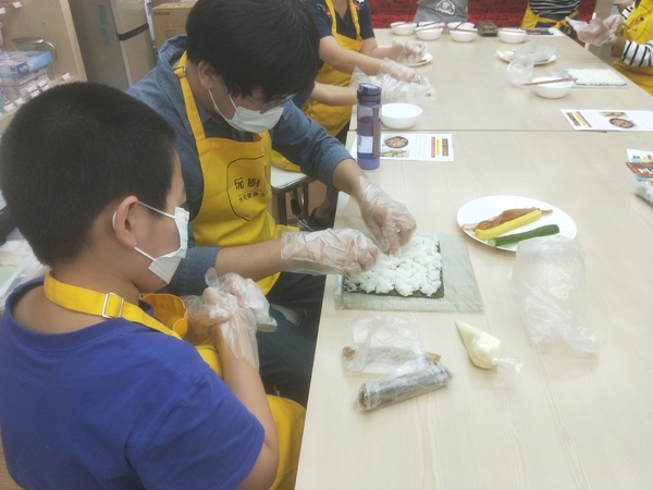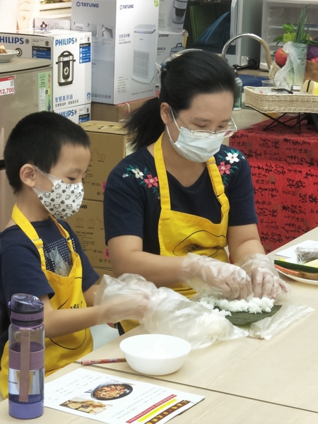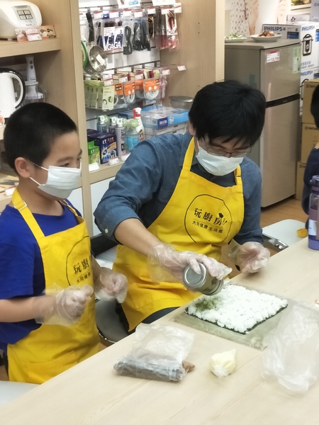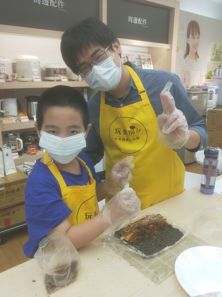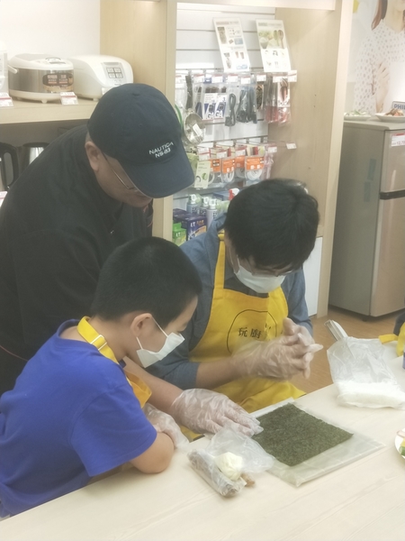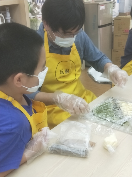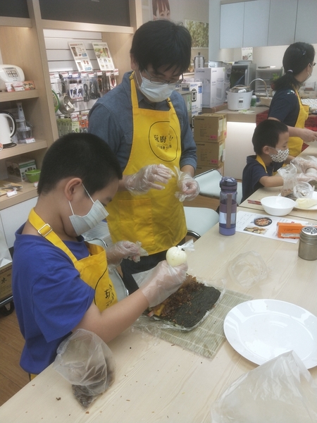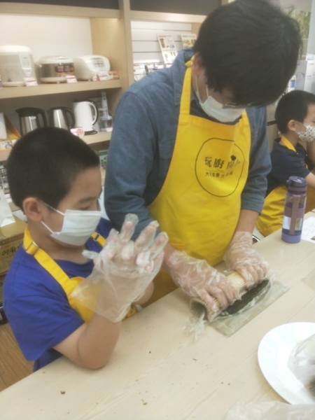 凱爸老師細心教導小朋友,如何塑型花壽司