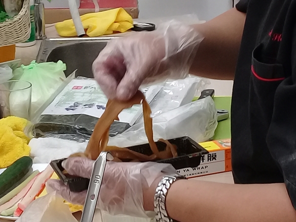1. 將昆布浸泡水中10分後,輕柔稍微拭洗表面。