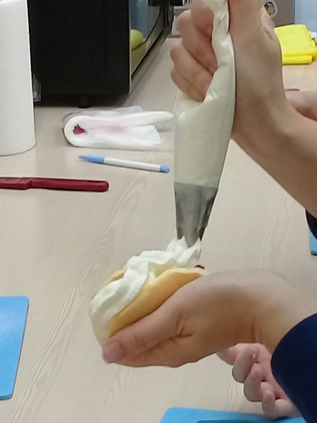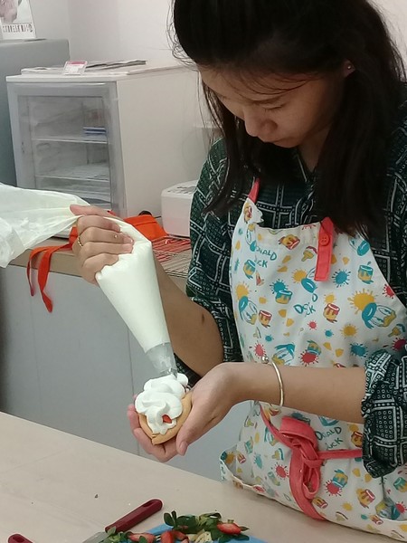 ⑭裱花袋內裝入8齒中號花嘴,裝入淡奶油。