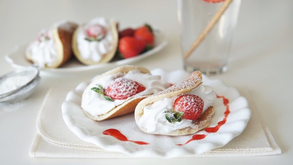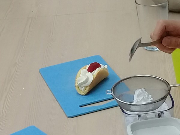 ⑰最後放半塊草莓在表層。喜歡甜的可以再篩一層糖粉在表面。