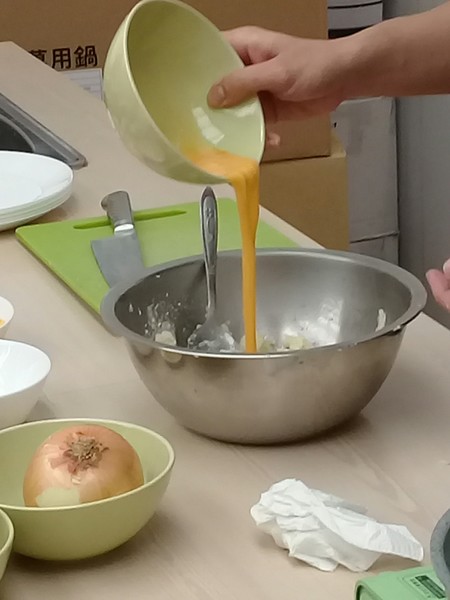 1. 先將馬鈴薯蒸過去皮搗成泥狀約180公克,將80公克的中筋麵粉加入馬鈴薯泥中,加入一顆蛋,將材料全部攪拌均勻成麵糰(發酵) 到沒有氣泡及顆粒。