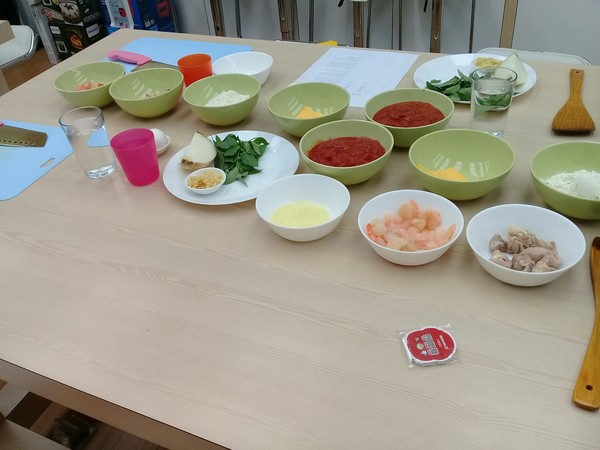 今日菜色:海陸洋芋麵疙瘩+焦糖烤布蕾布丁