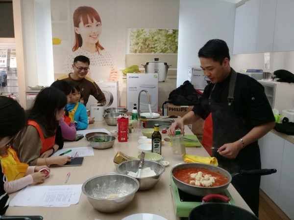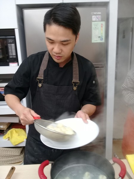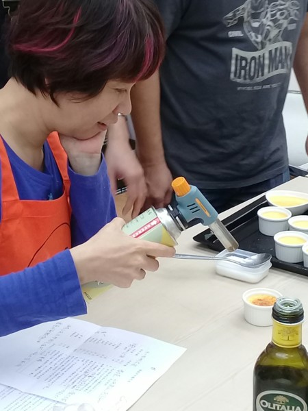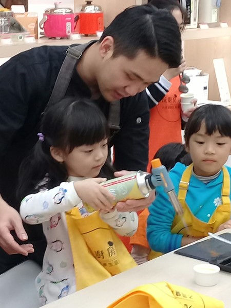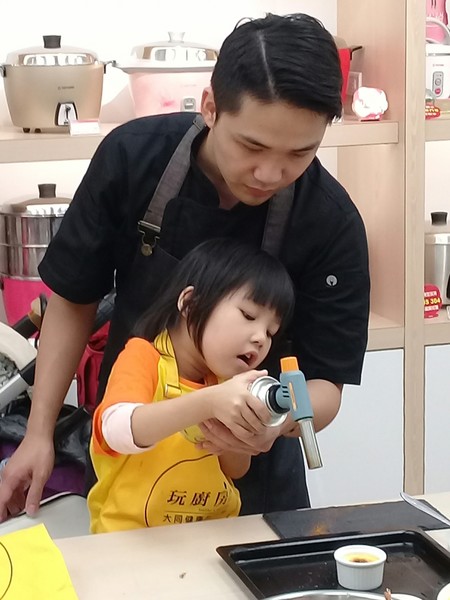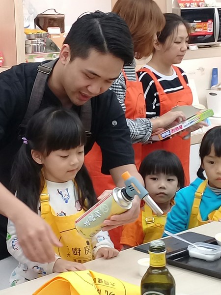 用洋芋做麵疙瘩,有特殊的鬆軟滑嫩,配上新鮮香草的芳香氣味,讓這道取材再平凡不過的麵點,跳脫家常,展現細緻的味覺驚喜。煮好的麵疙瘩既可香煎,也可自行搭配各種醬料,做出自家風格的麵疙瘩料理。製作完成後還可放進冷凍庫保存,不必解凍直接水煮,非常方便喔。而套餐搭配甜點為冬天最適合吃熱熱的烤布蕾,脆脆的焦糖搭配綿密的烤布蕾,滑順的口感讓大人小孩忍不住一口接一口,冰涼吃也很好吃喔!現場每位小朋友都能親自手作體驗,課後可以帶回自己做的料理哦!