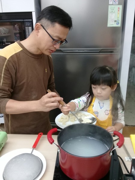 麵疙瘩好久沒吃了,印象還停留在初中讀書時常在~眷村老兵開的麵店,解饞點碗填飽肚子,零用錢多時就點碗海鮮的,少時就點碗肉絲的,在之後畢業工作後,就從未吃過的麵食,可真的是屬於黃金純真年代的記憶。那天假日跟我寶貝女兒吃午餐滑手機時,看到好學網裡介紹親子課程教做歐式麵疙瘩,好久沒吃被遺忘後的懷念的滋味湧上心頭。
