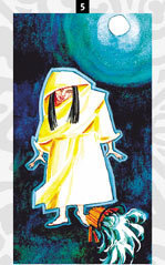 所以千惠野要怎麼辦?找不到出路,因此她就用火燒她自己的臉,將整個臉弄得疤痕累累。然後她才去找一位師父,他甚至分不出她是一個女人或是一個男人。她持續地學習和靜心三、四十年,然後,突然間,有一天晚上……她正在看著反映在水桶裡的月亮。突然間。那個水桶掉下來,水濺開來,月亮消失了││那變成一個引發的點。
