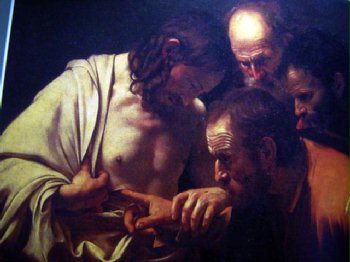 (上圖 多馬的懷疑 卡拉瓦喬 油彩畫布 現存柏林國立美術館)