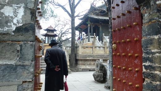 這是一座以銅為主建材的道觀,這是我第一次參觀中國的道觀,一進門是長長的林梢,冬季的蕭瑟夾伴著幾多嬌柔的竹林芭蕉,剛柔並排的窗櫺,自有和諧布局取代衝突,沿著階梯所看到的是各種珍奇鳥獸的石雕與銅雕,彰顯王侯遼闊的城府格局,俯瞰天下的謀略胸襟。