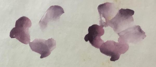 附圖一:羊毫筆淡粉蘸深紫寫花瓣五,近濃遠淡。