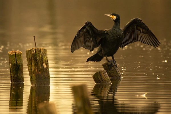 鸕鶿,俗名魚鷹,是一種大型食魚禽鳥,羽毛呈青銅黑褐色,頭頸部有紫綠色的金屬光澤,上嘴尖長而帶勾,墨綠色的圓眼睛銳敏犀利,善於潛水,捕魚本領高超。