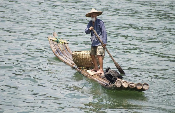 對於那些捕到大魚並主動上繳的鸕鶿,漁翁在取下大魚的同時也順便取下套在牠脖子上的草繩,從船艙裡揀些小魚拋給牠以示獎勵。鸕鶿張開長長的嘴巴接住拋來的小魚,一口就吞進了肚裡。然後,在船舷上稍作短暫的歇息,脖子被漁翁套上草繩之後又一頭扎進了河裡。如果遇到十來斤以上特別大點的魚,機靈的鸕鶿會在水下發出求助信號,同伴聞訊後都從四面八方迅速圍過來,有的啄頭,有的銜尾,把魚連推帶銜弄到船邊,以便漁翁立即用舀網捕捉。