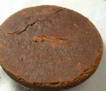 小時候見到茶枯餅是在大人洗衣的腳盆裡,將一小塊茶枯餅掰開,化在熱水裡,裡面便有了褐黃色的液體、稠濃狀,抹在搓衣板的衣服上,用手揉搓便起泡。那年代日用生活品匱乏,肥皂、洗衣粉、牙膏都得憑票供應,於是洗頭發、洗澡多用茶枯餅替代。那時我還小,感覺頭發不及後來風行一時的青春洗發膏洗得順滑,茶枯水揉搓在頭發上、塗抹在身上,裡面混雜的沒有化淨的茶枯渣,有些發糙、發硬,令人不適。為此,我經常僅洗一個不用任何洗滌品的清水澡。