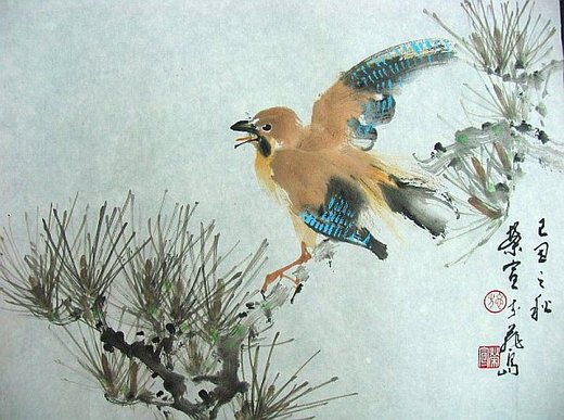 乾後以二青在飛羽上點斑。