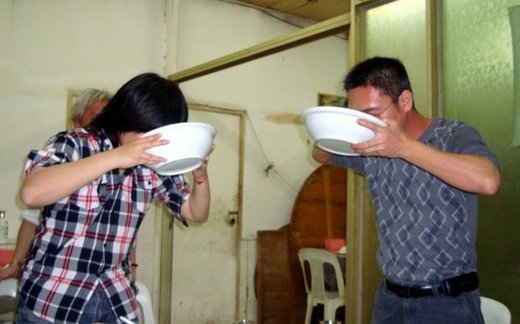 這次我真的開了眼界!年青人喝酒的方式令我這個老頭子瞠乎其後!原來,年青人鬥酒以年齡為基數:七十後七杯、八十後八杯(意則七十年代與八十年代出生的),全部倒在海碗中,一口氣乾盡!(見上圖)。