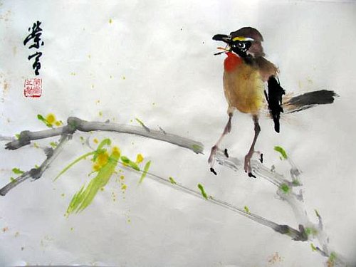 狼毫筆濃墨鈎嘴、點睛。