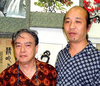 我趨前欣賞,心中有把書法長留在我照相機中的衝動,但一般我遵守對藝術品尊重的原則,不願在作者不同意之下拍攝作品,是以先向書室中某位看似主人的先生詢問,原來他正是書法家本人,承其雅量,邀筆者進入內室觀賞其他作品,並介紹他的著作,且與筆者合影。