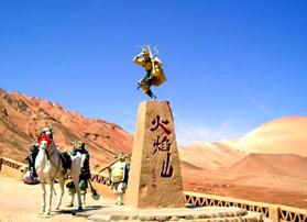 當年孫悟空大鬧天宮時,被太上老君丟進八卦煉丹爐,用三昧真火煉了七七四十九天,當煽火童子打開煉丹爐時,已煉成火眼金睛的孫悟空一腳蹬倒煉丹爐,兩個煽火童子驚恐萬狀,金丹散落一地,有幾塊火炭從天而降,恰好落在吐魯番,就形成了火焰山。 在地面景觀區的南面,就有關於這段傳說的雕塑,據說,煉丹爐底座的灰燼,至今還能烤熟雞蛋。