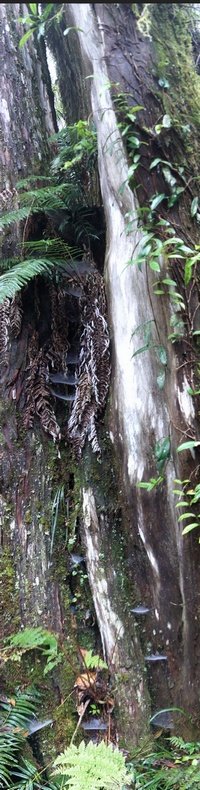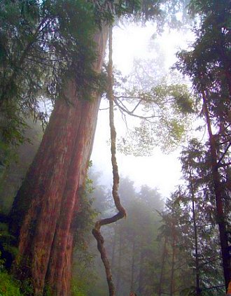 遊此園我個人頗有收獲,則知道樹木間有種「生死輪迴」的現象在,根據神木園的一位義工許玉清先生的解說:扁柏與紅檜經常一生一死並排,一棵死後另一棵生長,二種樹雖然樹葉有點相似,但樹皮部份則很容易分辨。經許老先生的解說,我注意到園中我們走經的地段,有好幾雙這種一生一死卻生死相依偎的扁柏與紅檜。(見附圖右)。