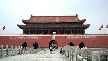 該影視城的主要景點是天安門廣場,整個建築按真正天安門的規格縮建的,其仿真的工藝、令人驚嘆。從外廣場跨過金E 橋進入天安門廣場,以及太和殿廣場、太和殿、養心殿、九龍壁、御花園等等,無不唯妙唯肖,從照片上看,相信不易覺察其真偽(見上、下兩圖)。
