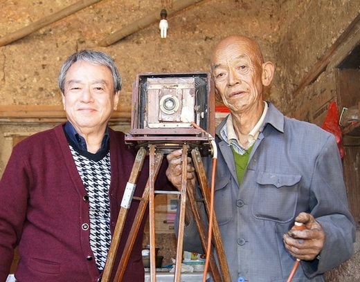 老先生不大說话,與兒子金城主席一起默默地把帶來的老相機架起,架完後我們一起與照相機合影,其中一幀三人合照已在正月廿四與金城主席的大作中見報,這裡另刊一幀獵人君拍的,我與老先生的合影(見上圖)。