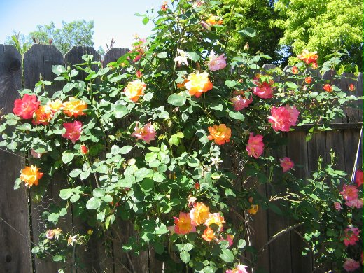 雖只攀上四分之一牆面,卻燦放著各色花朵,紅、粉、黃、橘、白...,美極了。