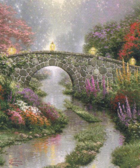 Thomas Kinkade正是我最最喜歡的畫家,很難想像他與我們同一個年代(說不定比我還年輕呢)。他畫中光、燈、倒影等的表現,簡直令我著迷。